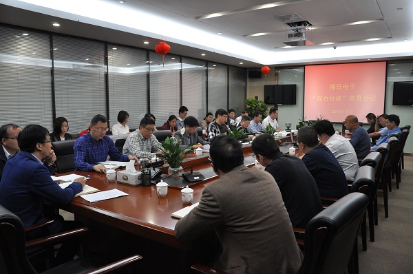 2018年1029日,福建福日電子股份有限公司召開“雙百行動”宣貫會議,本部中層及以上管理人員、在榕成員企業、事業部主要負責人等參會。會上,本部資運部負責人介紹了公司“雙百行動”綜合改革實施方案。福建省電子信息集團副總經理兼福日電子董事長卞志航出席會議并講話。