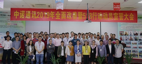 2019年4月4日,福日電子全資子公司深圳市中諾通訊有限公司2019年全面改善暨518行動動員誓師大會在中諾學院舉行,公司運營平臺、各事業部代表約120人參會。