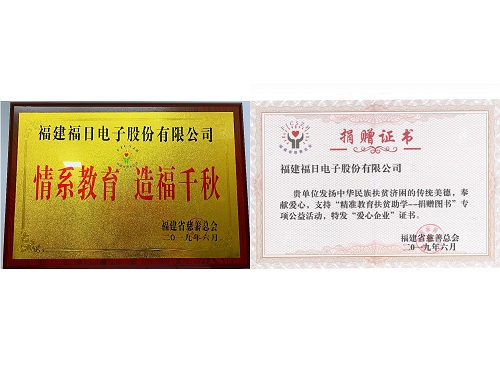 福日電子積極落實習近平總書記關于精準脫貧的重要講話精神,開展教育扶貧,履行上市公司的社會責任,響應福建省慈善總會、福建省海峽社會組織研究院共同發起的《關于開展“精準教育扶貧---捐贈電腦、圖書”專項公益活動的倡議》,為明溪縣城關中學捐贈愛心圖書約1300余冊,豐富了學校圖書室的書籍種類和內容,受到了慈善總會和學校誠摯的感謝。