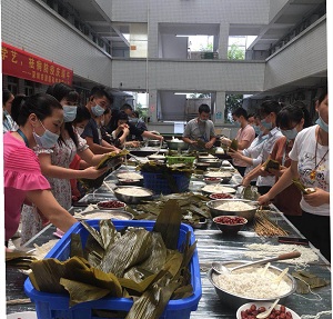 活動現(xiàn)場,糯米、紅棗、粽葉等材料擺放在桌子上。經(jīng)驗豐富的員工向身邊的新手教授包粽子的方法,粽葉重疊再折疊,卷成漏斗狀后,用糯米、紅棗等充實壓緊,再用繩一繞一捆,一個個精美的粽子就誕生了。本次活動歷時2小時,參加活動的員工手工制作了1000多個粽子。包好的粽子在公司食堂蒸熟后,公司人資部工作人員負責分裝粽子,總經(jīng)辦相關(guān)負責人分別走到各部門、倉庫、宿舍等,將粽子分發(fā)到員工手上,讓員工充分感受到企業(yè)的關(guān)懷。