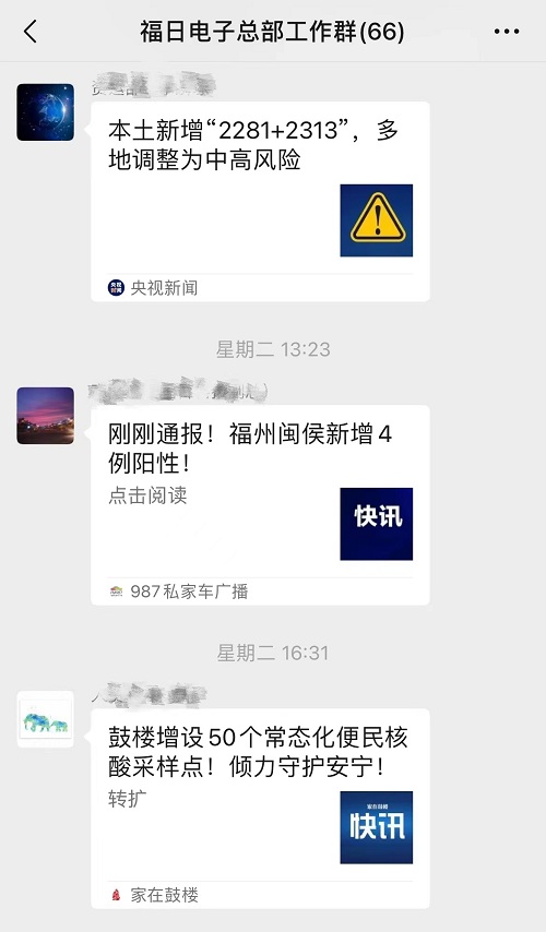 本部工作群內(nèi)每日更新疫情最新動態(tài),宣傳疫情防控政策、提供核酸檢測相關(guān)信息,及時答疑解惑;公司紀(jì)檢部門第一時間貫徹落實集團(tuán)部署,督促全員嚴(yán)格落實疫情防控工作要求,做到企業(yè)所在地疫情防控指揮部發(fā)布公告要求開展全員核酸檢測的,員工“應(yīng)檢盡檢”;在電子信息集團(tuán)系統(tǒng)率先發(fā)布致全體員工的倡議書,發(fā)出眾志成城、共度時艱的動員令,要求提高思想認(rèn)識、加強(qiáng)組織保障、發(fā)揮黨組織作用,切實筑牢疫情防控防線。