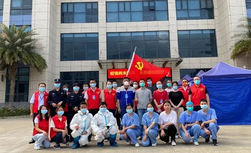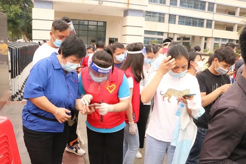從早上8點半起,周邊企業(yè)的員工們就分批來到等待區(qū)域。“請往這里走。”“麻煩出示一下行程碼。”一抹抹白色與紅色交織的身影,正在進(jìn)行現(xiàn)場分流引導(dǎo)、幫忙查詢行程,他們正是由邁銳光電黨支部黨員和入黨積極分子組成的7人志愿者隊伍。在他們的助力下,現(xiàn)場每個步驟環(huán)環(huán)相扣、有條不紊,在當(dāng)日16時即完成全部6500余人的核酸檢測工作,讓黨旗在防疫一線高高飄揚。