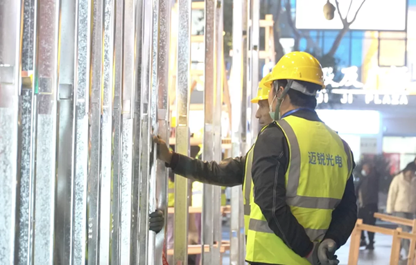 拉起圍擋,建起腳手架,拆除舊屏,搭建鋼結構,吊裝與拼接新屏箱體……歷時1300小時,由福日電子成員企業邁銳光電打造的又一重磅潮流城市地標南京首塊雙4K全面超高清大屏——“珠江1號巨幕&Bigger Tang”地標巨幕煥新而生,十歲的長窄型大屏成為過去式,雙4K超高清裸眼3D大屏正式登場。