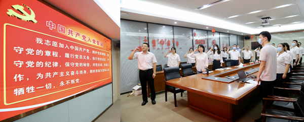 “我志愿加入中國(guó)共產(chǎn)黨,擁護(hù)黨的綱領(lǐng),遵守黨的章程……”隨后,黨員們心懷赤誠(chéng),舉起右拳,重溫入黨誓詞,追憶入黨初心,鏗鏘有力的聲音響徹會(huì)場(chǎng),表達(dá)了對(duì)黨的無(wú)限忠誠(chéng)與熱愛(ài)。