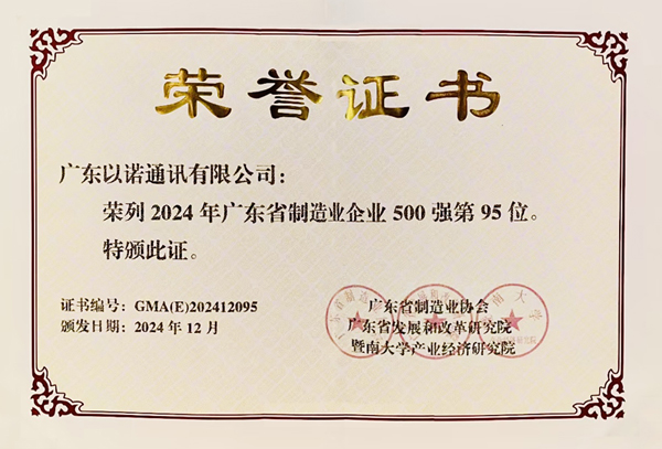 以諾通訊榮登2024年廣東省制造業企業500強第95位