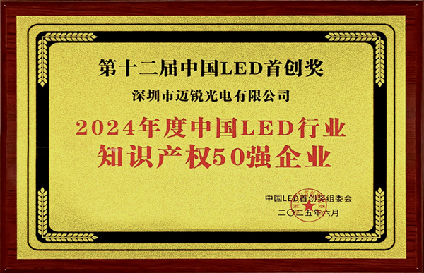 2025年6月,在第十二屆中國LED首創獎頒獎典禮上,福日電子成員企業邁銳光電成功入選“2024年度中國LED行業知識產權50強”,以突出技術創新力與知識產權管理能力贏得行業高度認可。