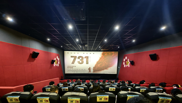 觀影現(xiàn)場氣氛凝重。隨著影片推進(jìn),觀眾心緒隨著情節(jié)起伏——當(dāng)鏡頭展現(xiàn)受害者被迫參與實驗的場景時,影廳內(nèi)一片沉寂,不少職工緊鎖眉頭、眼眶濕潤;當(dāng)展現(xiàn)活體實驗的片段出現(xiàn)時,更有人低聲嘆息、轉(zhuǎn)過頭去。影片以震撼人心的真實影像,讓每一位觀眾深刻感受到民族的苦難與堅韌。