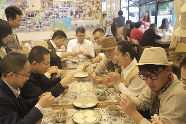 隨后,黨員們和“星員工”們圍坐一堂,同包餃子。餃子,是連接孤獨(dú)癥青年們與社會(huì)的橋梁。將餃子皮平鋪在手心,舀餡、捏褶,指尖翻飛間,一個(gè)個(gè)餃子便陸續(xù)成型——“星員工”們化身小導(dǎo)師,一絲不茍地向黨員們傳授技巧,現(xiàn)場(chǎng)歡聲笑語(yǔ)不斷,大家也頻頻為“星員工”們嫻熟的技術(shù)點(diǎn)贊。溝通交流中,大家進(jìn)一步提高了對(duì)孤獨(dú)癥的認(rèn)識(shí),增進(jìn)了對(duì)他們的理解和接納。