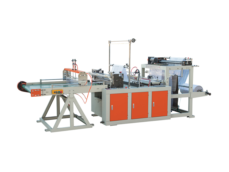 While the hot sealing and cold cutting bag making machine is to heat seal a knife first, and then cut off with a cold knife, and the edge after cutting is open. It can not only be used in the production of vest bags, but also can be used in the production of flat pockets by changing the double-line sealing knife into single-line sealing knife. Because it has an open cut edge.
